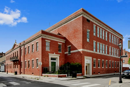 Built in 1949, the historic, former St. Louis Cathedral Academy Parochial School and Nuns Convent has undergone a complete historic restoration by de la Tour Holdings, LLC, with construction by RMI, Inc., Woodward Design+Build, in concert with nationally recognized Trapolin Peer Architects and Melissa Legier Designs.